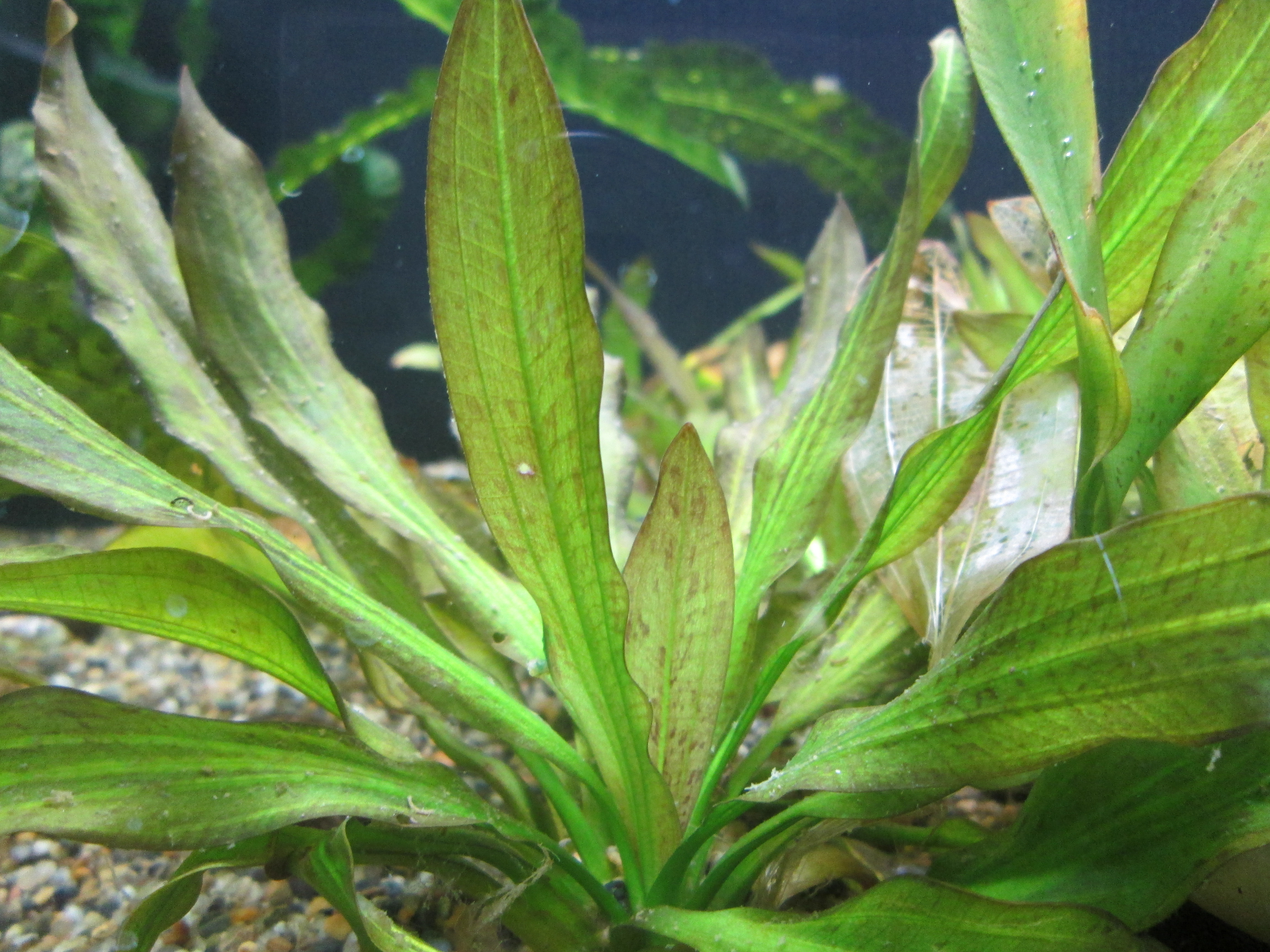 エキノドルス全般に言えることですが、植え替えに弱く、根がすぐに溶けてしまいます。状態よく栽培するには植え替えを行わないことと、根元付近に底床用の肥料を追加してください。