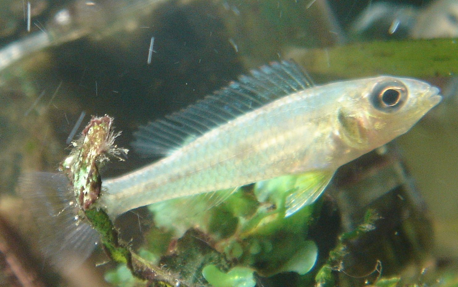 白く細長い体型をしているブラジル原産の小型のシクリッド。