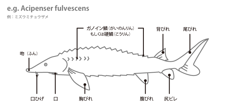 現在位置 : トップページ > コラム > 魚の各部名称 > チョウザメの各部名称