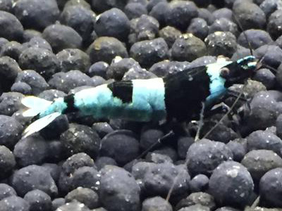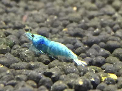 写真提供:吉田観賞魚販売 ターコイズ・シュリンプ。何がどうして、こんなに綺麗なブルーになったのでしょうね。[編集]