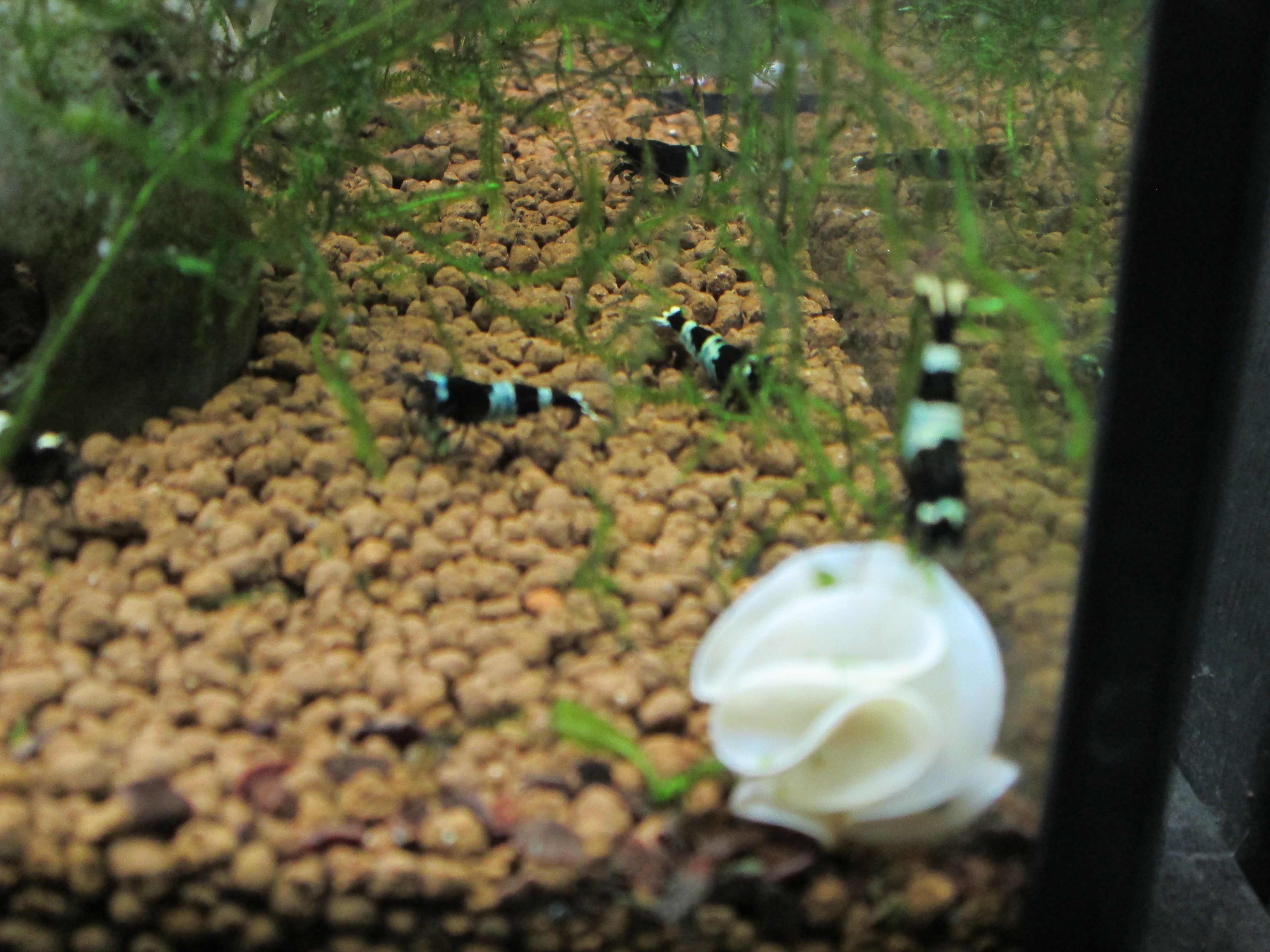 最近では元々の黒い色と白が強く出るブラックシャドーシュリンプも人気が出ている。