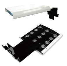 - LEDチップは、高性能でLEDシェアNo.1のUSA・Cree社製パワーLED(ホワイト)を12チップ搭載し、水槽 用に開発した広角レンズを各チップごとに装備。水槽内を明るく均一に照らします。