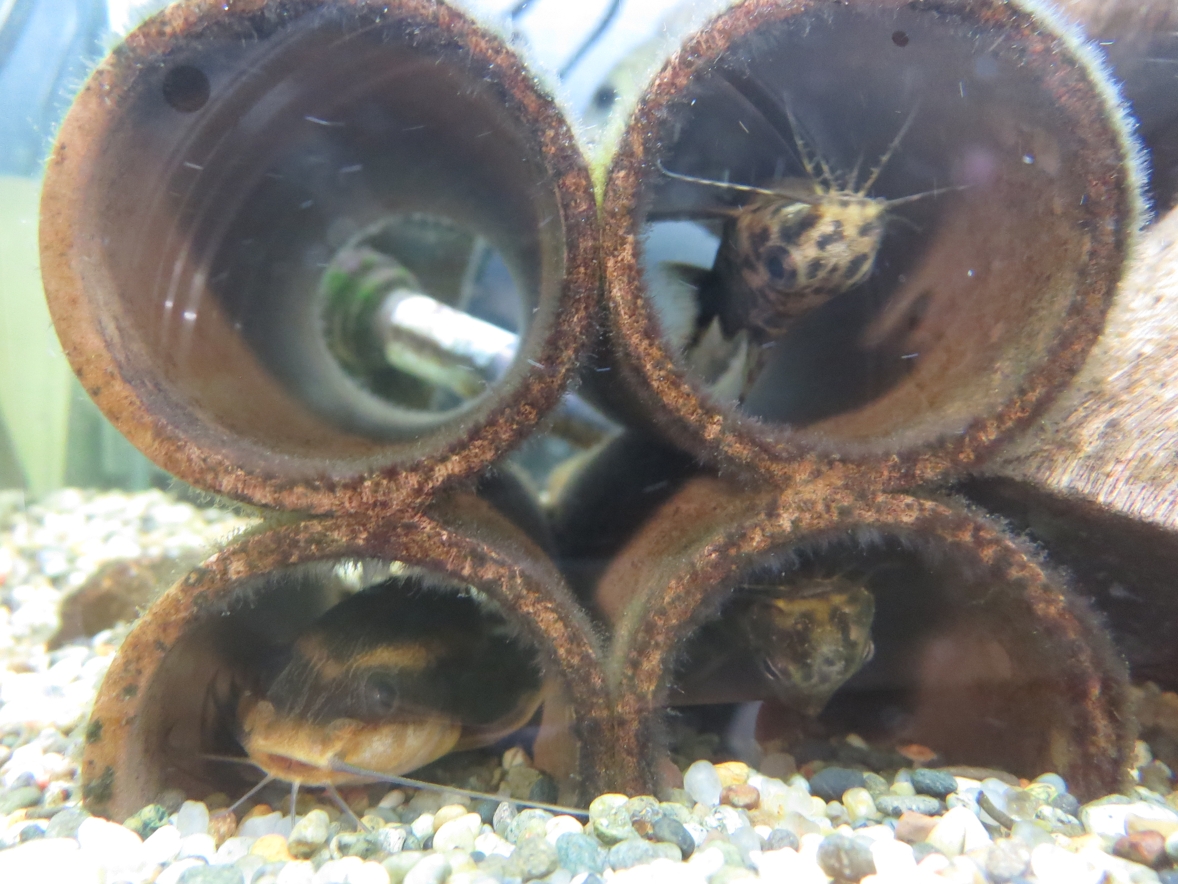 5年以上楽々生きてくれる丈夫なナマズです。ただ、石組みや流木の多めなレイアウトでは隠れがちで滅多に見れません。大掃除の際に流木などを退けると倍くらいに成長してビックリさせられることがよくあります。たまに、餌の時間にこっそり現れますが、気配を感じるとすぐ引っ込んじゃいます。(くーや。 2017-10-26 (木) 03:44:13