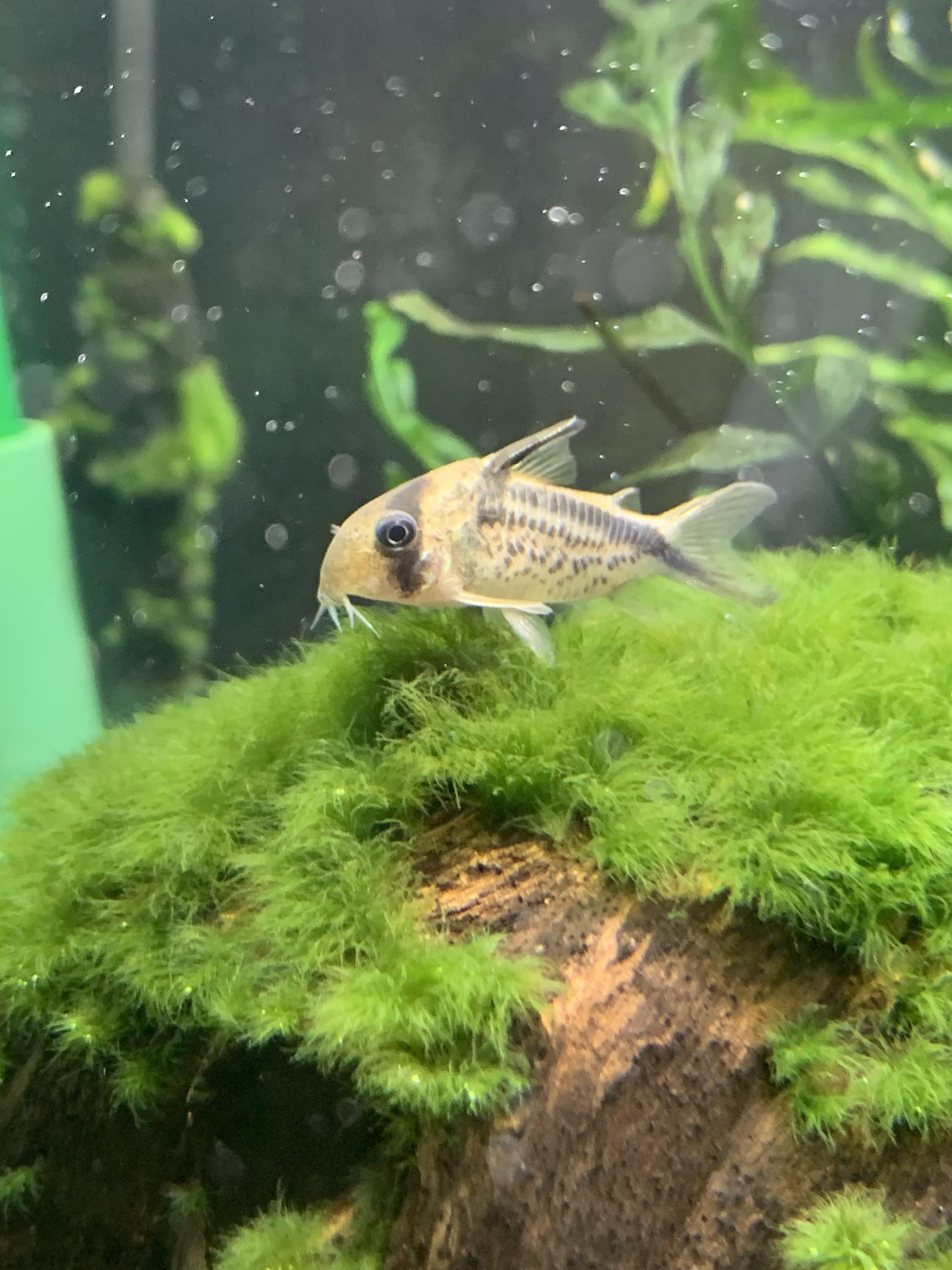 コリドラス・アクセルロッディに似ているが背ビレに入る黒いラインで違いがわかる。黒が強く出て、なにか身をはばかっているヒーロー物の主人公のように見えるのは私だけだろうか。