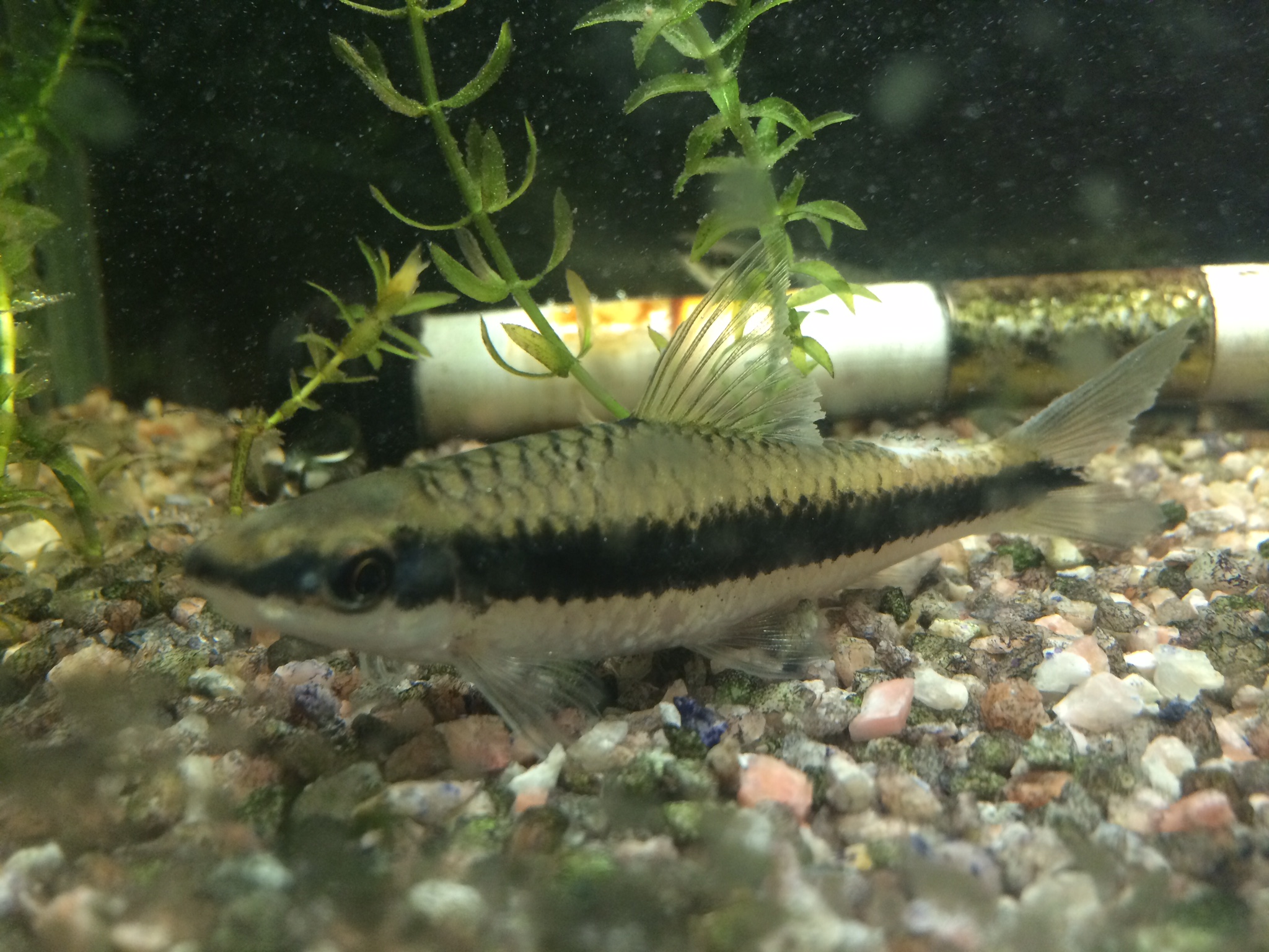 飼い始めは2㎝位で弱々しく感じましたが、成長が驚くほど早く、3ヶ月で6㎝位になりました。餌に対して貪欲です。うちのは、絶えず食べれるものを探してる感じで、黒ヒゲ苔とかもたべますが、落ち着きがなく、少し啄んでは また 違うとこに移動してます。餌を独占しようとし、ゆっくり 控えめに食べる魚には 攻撃しませんが、急いで食べようとする魚(ウチでは小型カラシン) を追いかけ回します。餌の時間が終わり、落ち着くと 攻撃はなくなります。憎めない魚で気に入ってます(名無しさん 2017-02-27 (月) 22:56:11