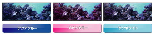 アクアブルー・ネオンカラー・サンホワイトとイメージする深度に合わせた3色の光をご用意。