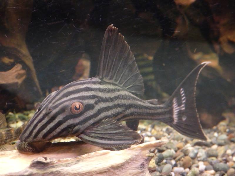| 餌 | 人工飼料、冷凍飼料、活餌。なんでも食べるが、草食性の高い種なので、植物質の含まれたコリタブが向いている。もしも上手く餌付かなければキュウリ、レタス、ナス、茄子、ズッキーニ、じゃがいも、山芋、エンドウ、インゲンなどを与える。また流木を食べるが、水槽用の流木だけでは栄養素が少ないため他の餌が必要。ブラックウッドが好物。 | |
