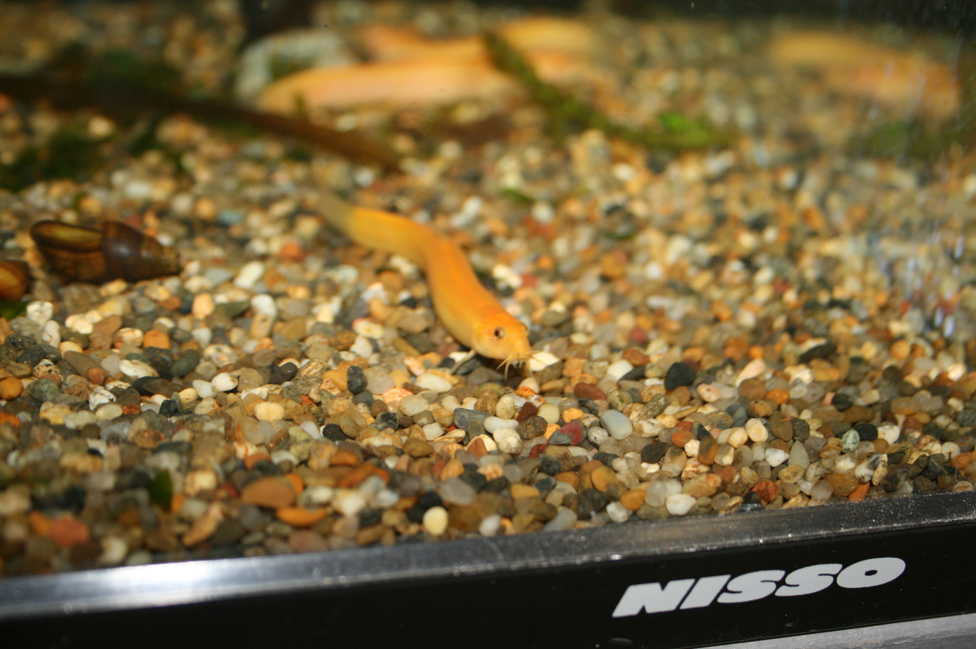 細長いニョロニョロとした体型で、口の周りに10本のヒゲを持っている。