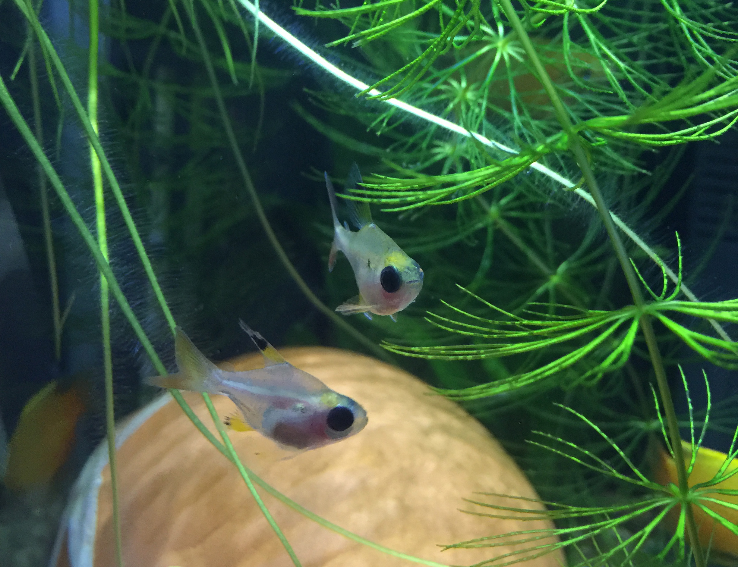 プリステラ属は1属1種で、確かに他のカラシンには見られない独特の泳ぎ方をする。変わり者を好きなマニアにも、初心者にもおすすめの魚だ。
