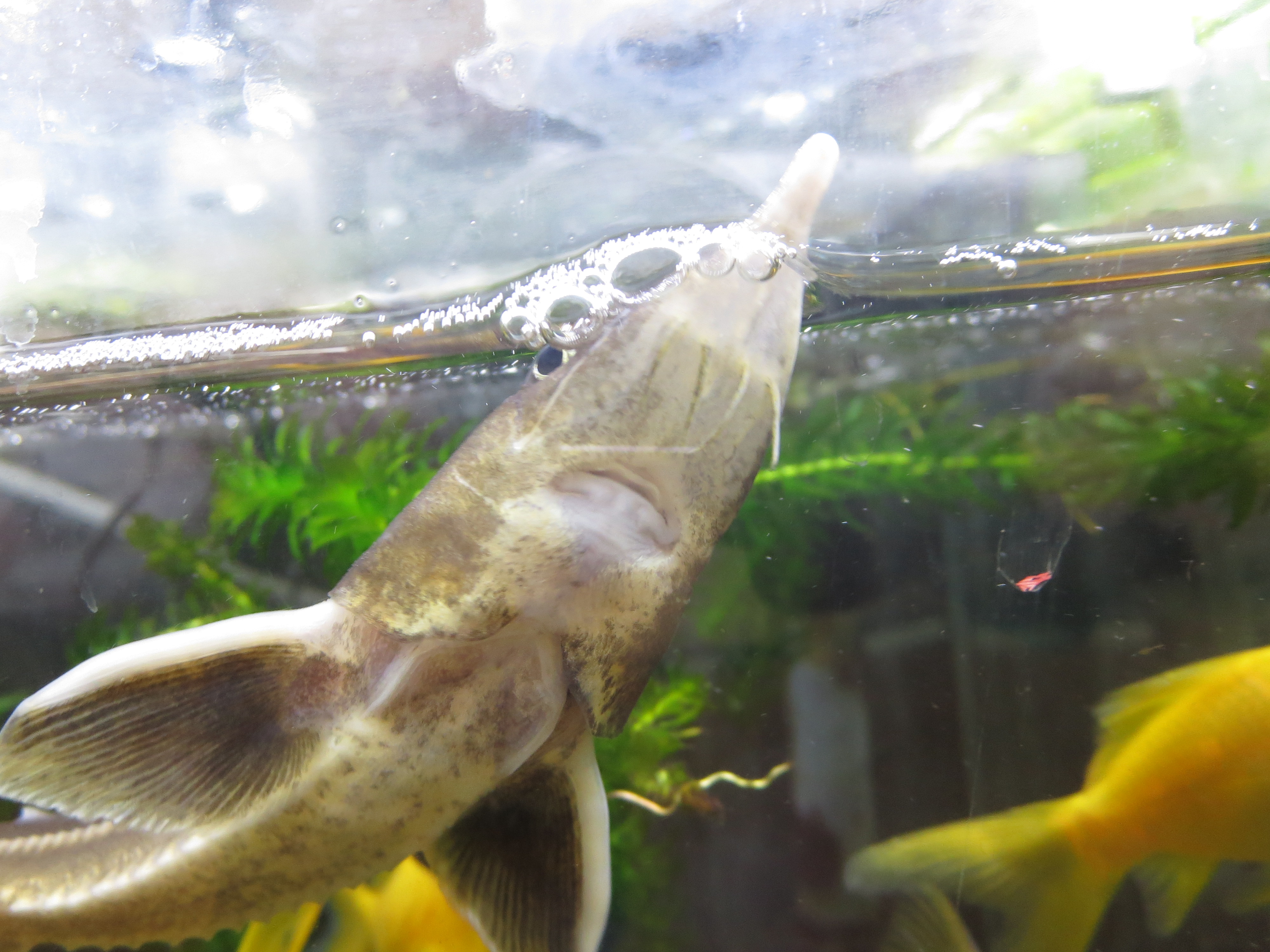 | 餌 | 植物性の餌を消化できない。動物性の餌が向いている。チョウザメの専用フードが無難。 | |
