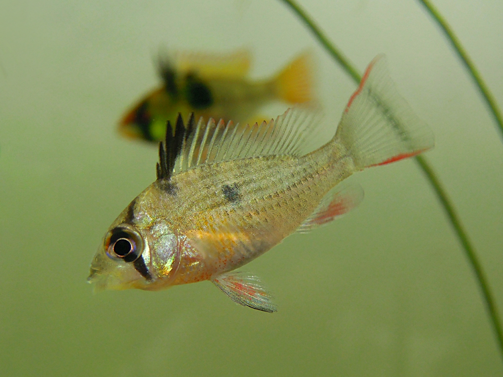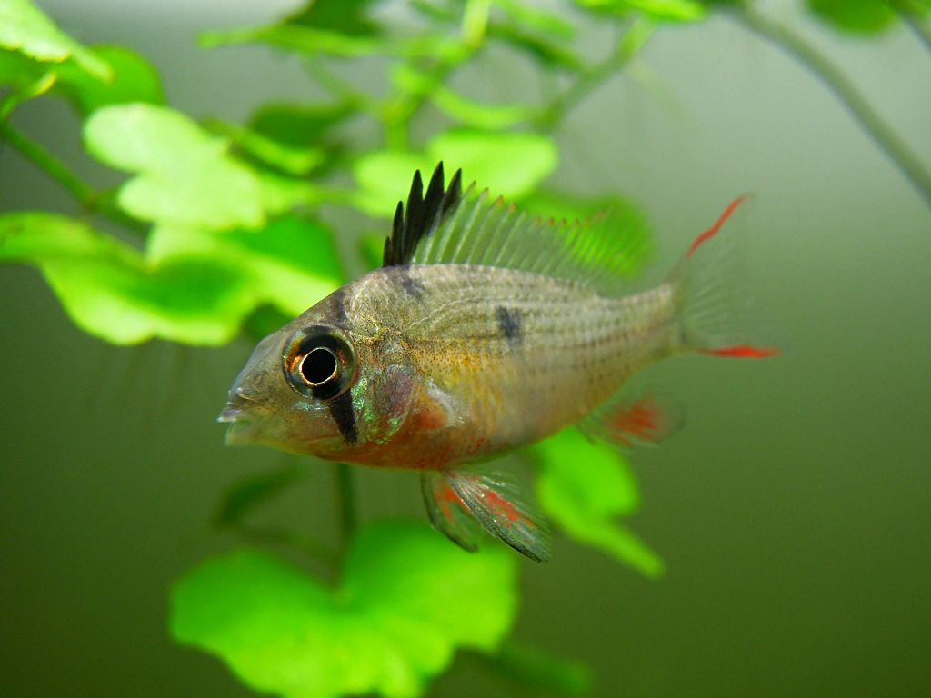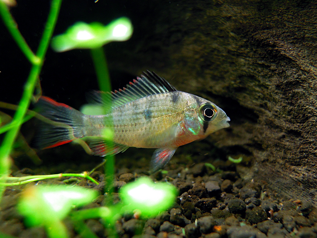 ラミレジーに比べると美しい色彩が見られる時期が限られているが、それだけに体色の変化を楽しめるというもの。丈夫で飼育しやすく、繁殖も狙える。そして東南アジアでブリードされたものが多いなど、環境もラミレジーそっくりだ。