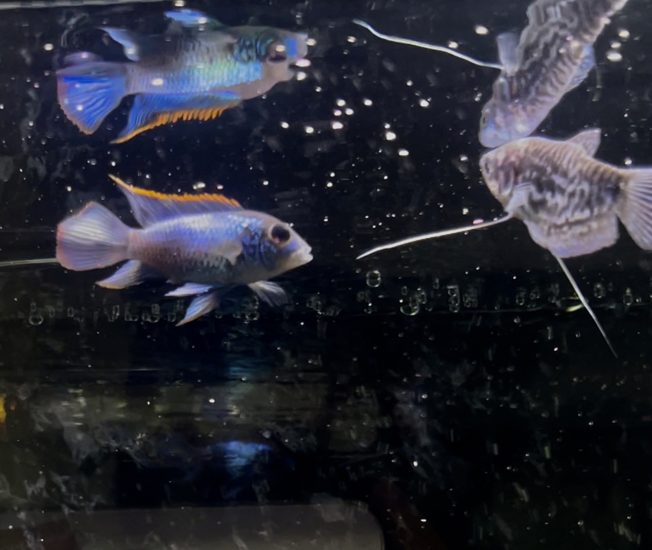 60センチ水槽でマーブルグラミー4匹とコバルトブルーアカラ1匹を入れて飼育しています。マーブルグラミー同士は喧嘩や追いかけ回したりするがコバルトブルーアカラに対しては攻撃を仕掛けたり追い回したりしない。(名無しさん 2022-11-28 (月) 20:17:42