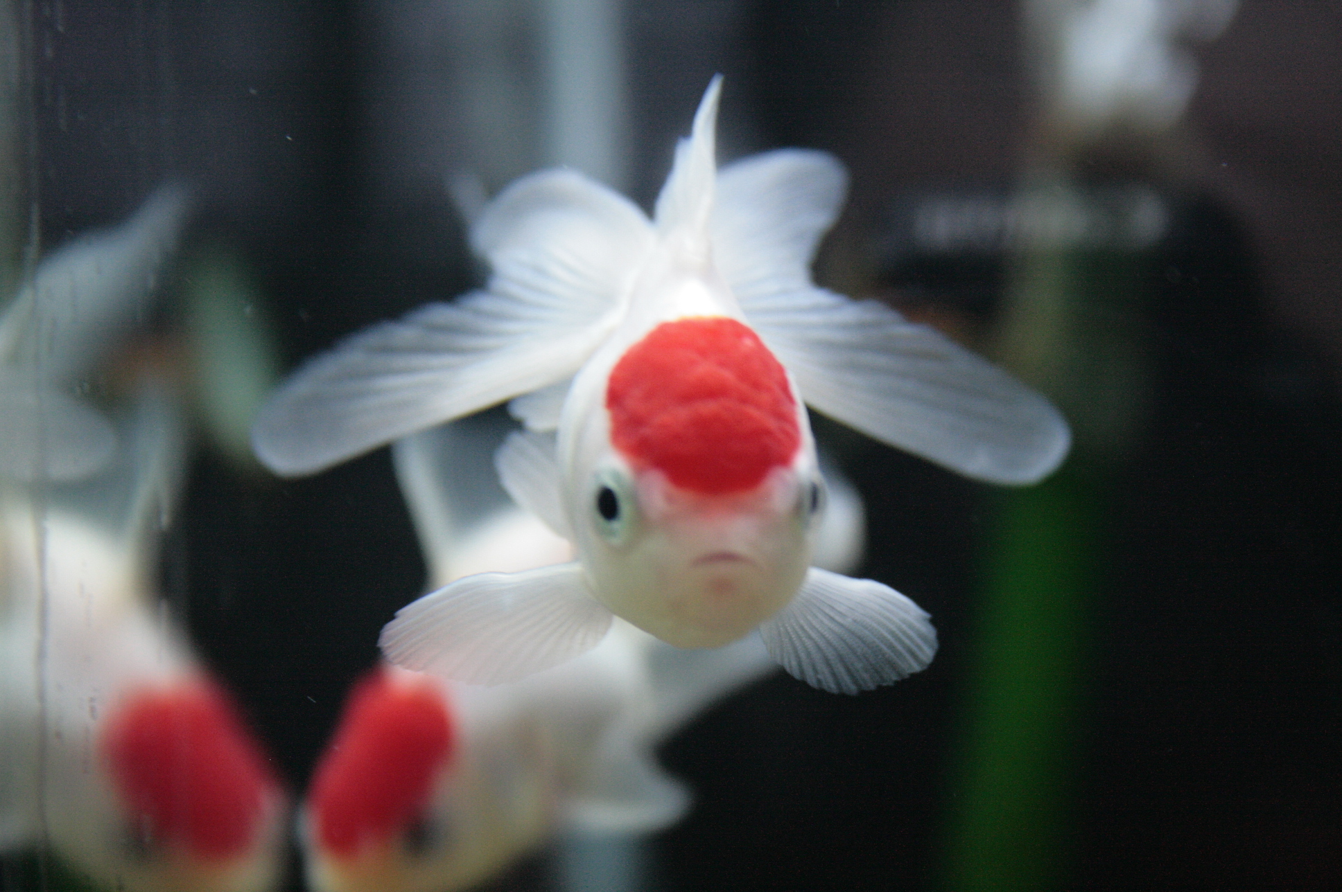 キンギョ(金魚)の一種で、オランダシシガシラの白変種。