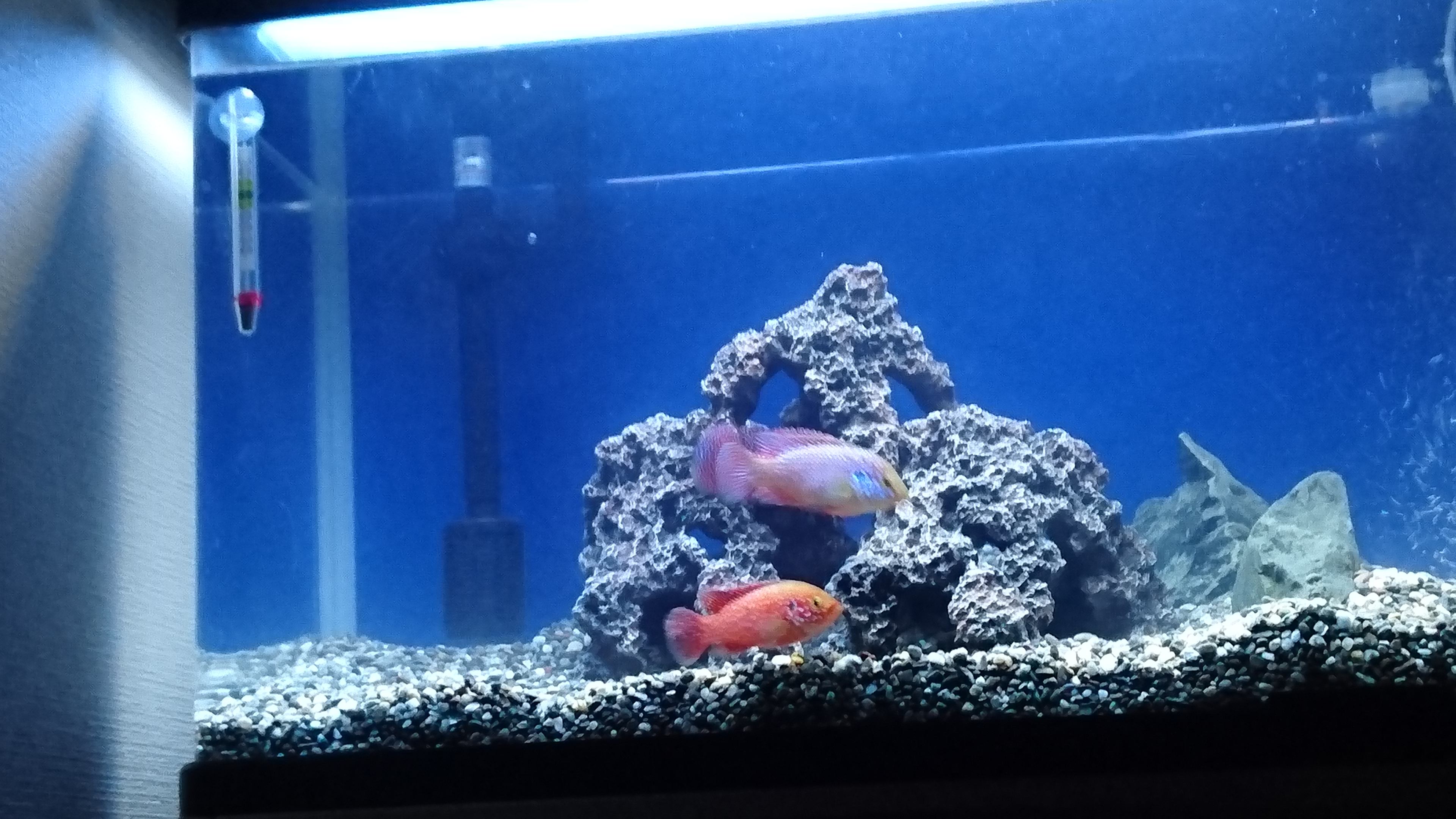 混泳での注意点とても気が荒い。どんな魚でも勇猛果敢に喧嘩を仕掛ける。基本的に混泳は不可能。するとしても同種のペア限定にしたほうが良い。繁殖時は多少気が荒くなるので注意。
