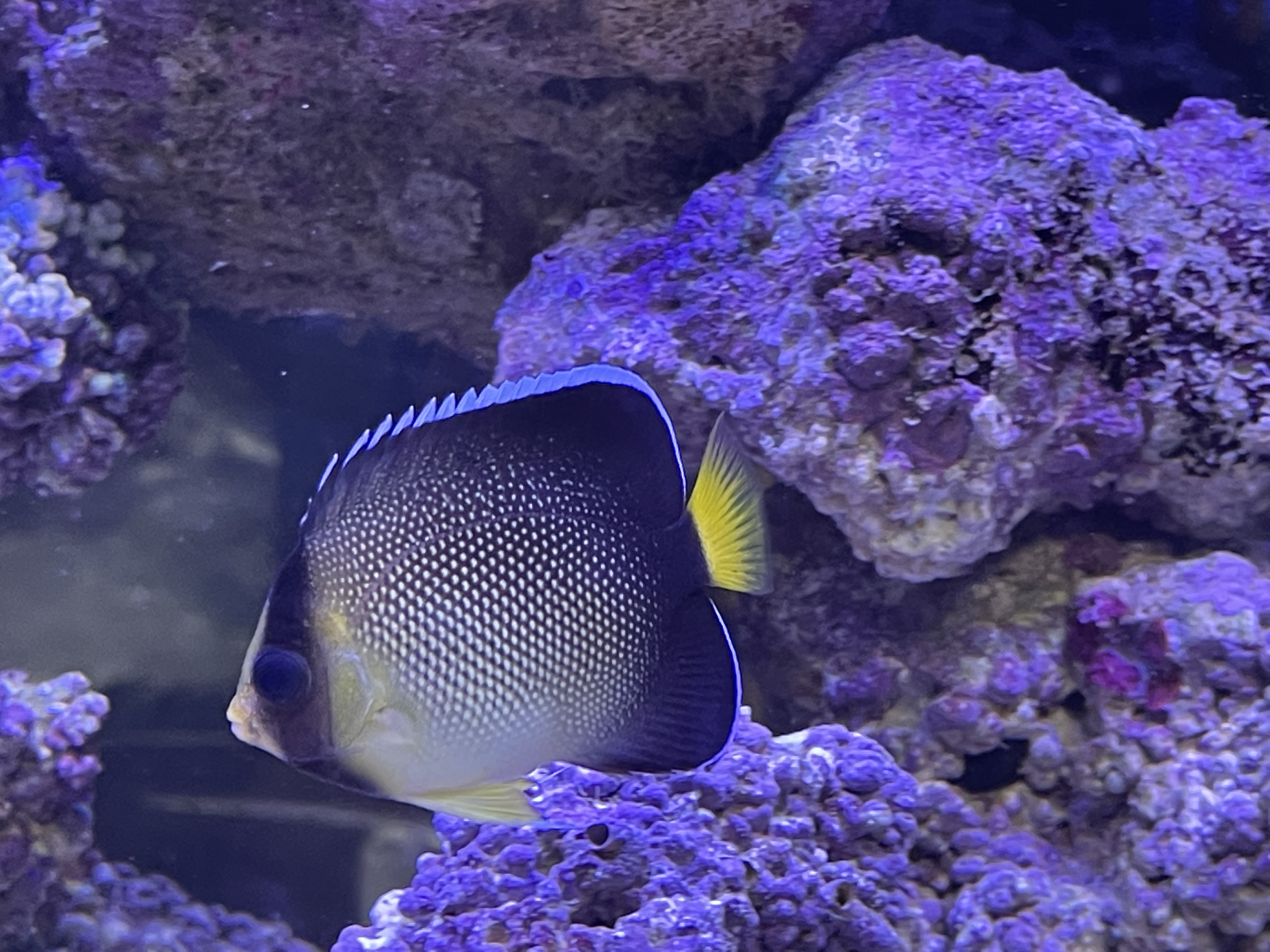 クロシテンヤッコ500円玉サイズ(小さ目)見た目が可愛くて1200×450水槽に迎えましたがやっぱりムリ(T . T)