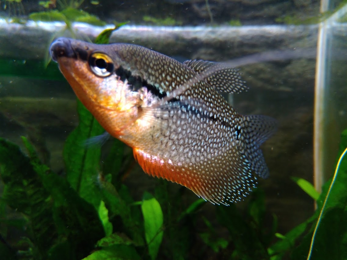 ベタと近い種で、同じようにラビリンス器官?を持ち、水面から呼吸が出来る。